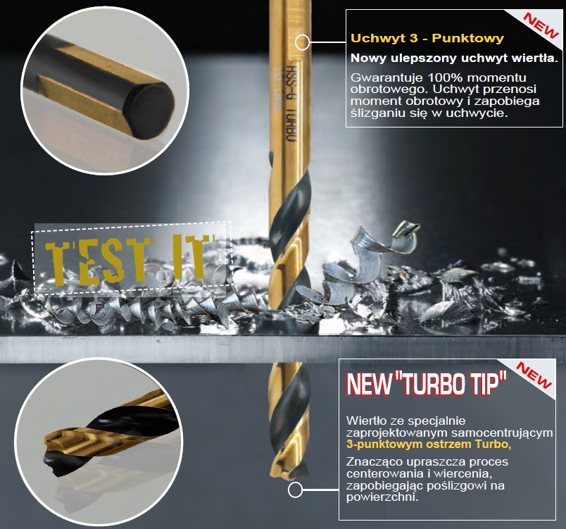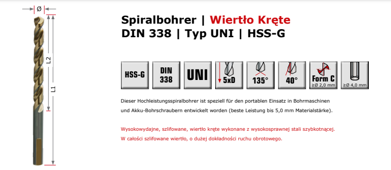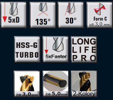 Wytrzymałe, wysokowydajne, wiertło wykonane z wysokiej jakości stali szybkotnącej HSS-G TURBO. Zapewnia fantastyczną wydajność skrawania, długą żywotność i odporność na podwyższone temperatury. Szlifowanie kształtowe zapewnia precyzyjne i perfekcyjnie okrągłe otwory.