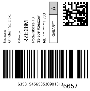 Nadaj za pomocą kodu nadania, wielkość skrytki wybierzesz przy paczkomacie.